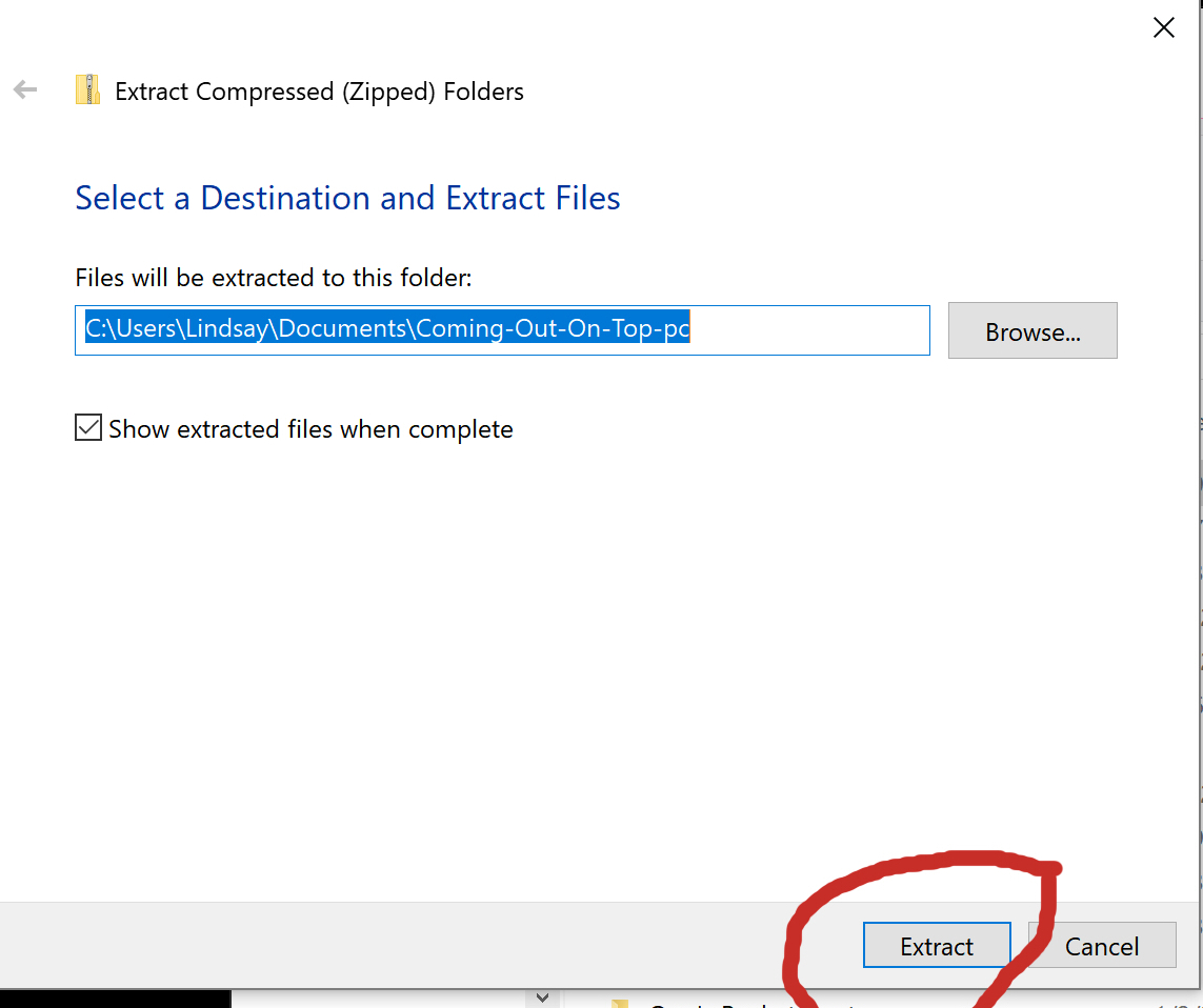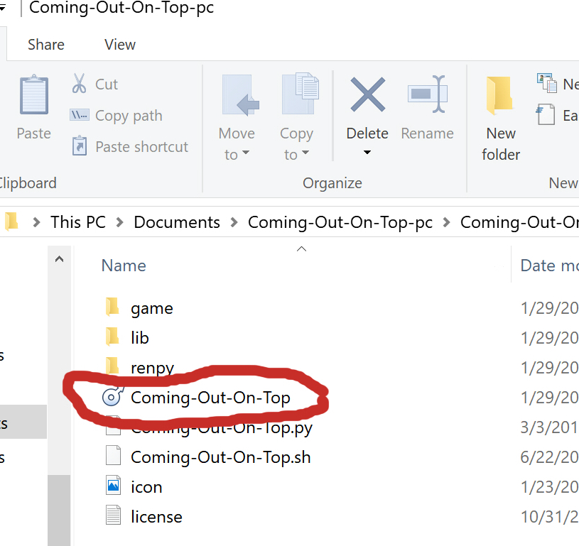 Go inside this new folder, and double click the Coming-Out-On-Top file.
